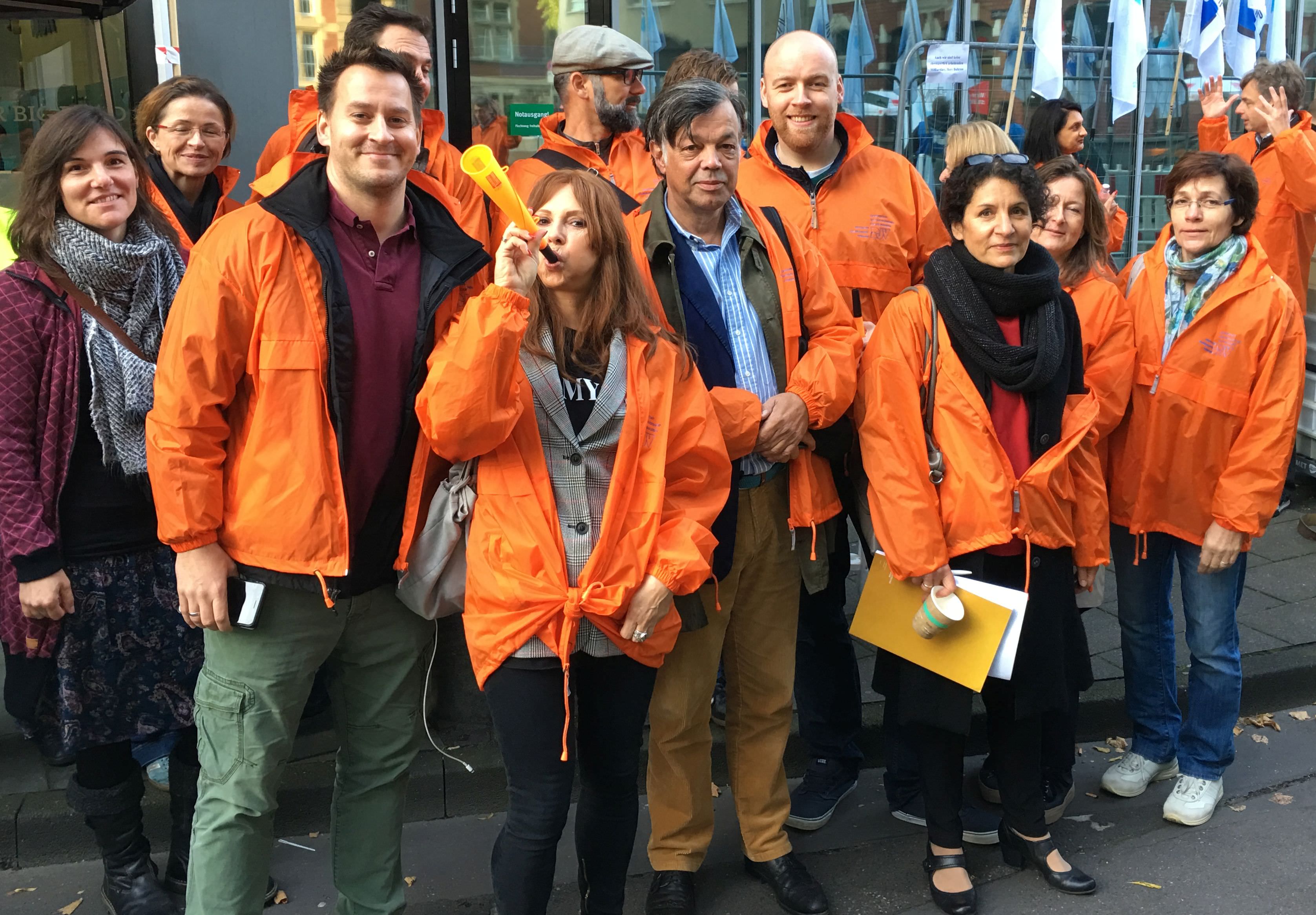 Warnstreik_WDR_220917Weil sich die Arbeitgeberseite in den Tarifverhandlungen nicht bewegte, traten JournalistInnen des Westdeutschen Rundfunks (WDR) wiederholt in den Warnstreik. Im letzten Warnstreik legten nach Angaben des Deutschen Journalisten-Verbands (DJV) über 400 MitarbeiterInnen die Arbeit nieder. Nachrichtensendungen entfielen oder mussten durch Notpersonal gestemmt werden, beim Sender 1Live-Info solidarisierten sich die JournalistInnen und spielten zeitweise nur Musik ohne Moderationsbeiträge. Am 25. September vermeldete der DJV: In der fünften Verhandlungsrunde kam es endlich zum Tarifabschluss. Demnach können sich WDR-JournalistInnen auf 2,0 bis 2,2 Prozent mehr Gehalt freuen – bzw. auf entsprechend höheres Honorar.